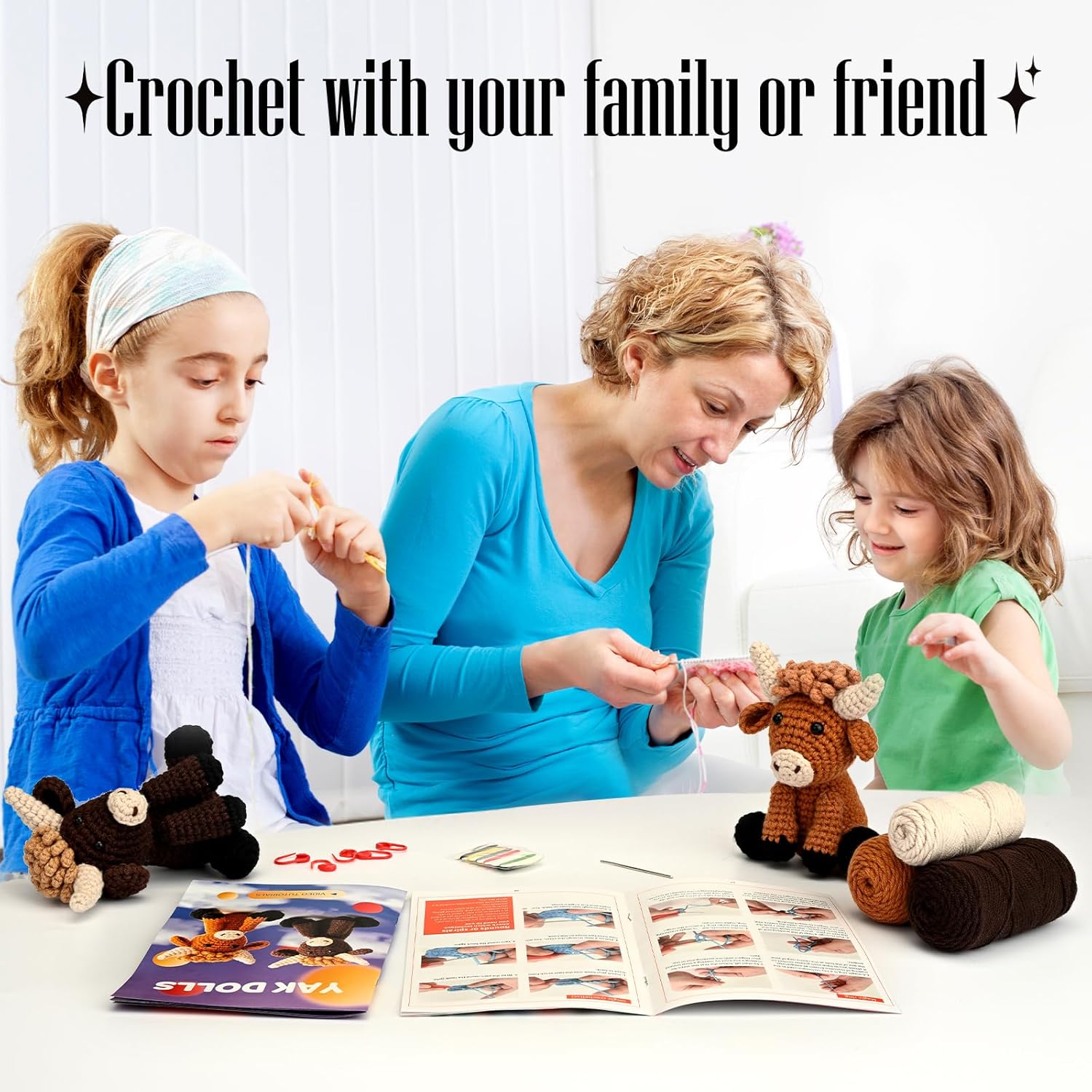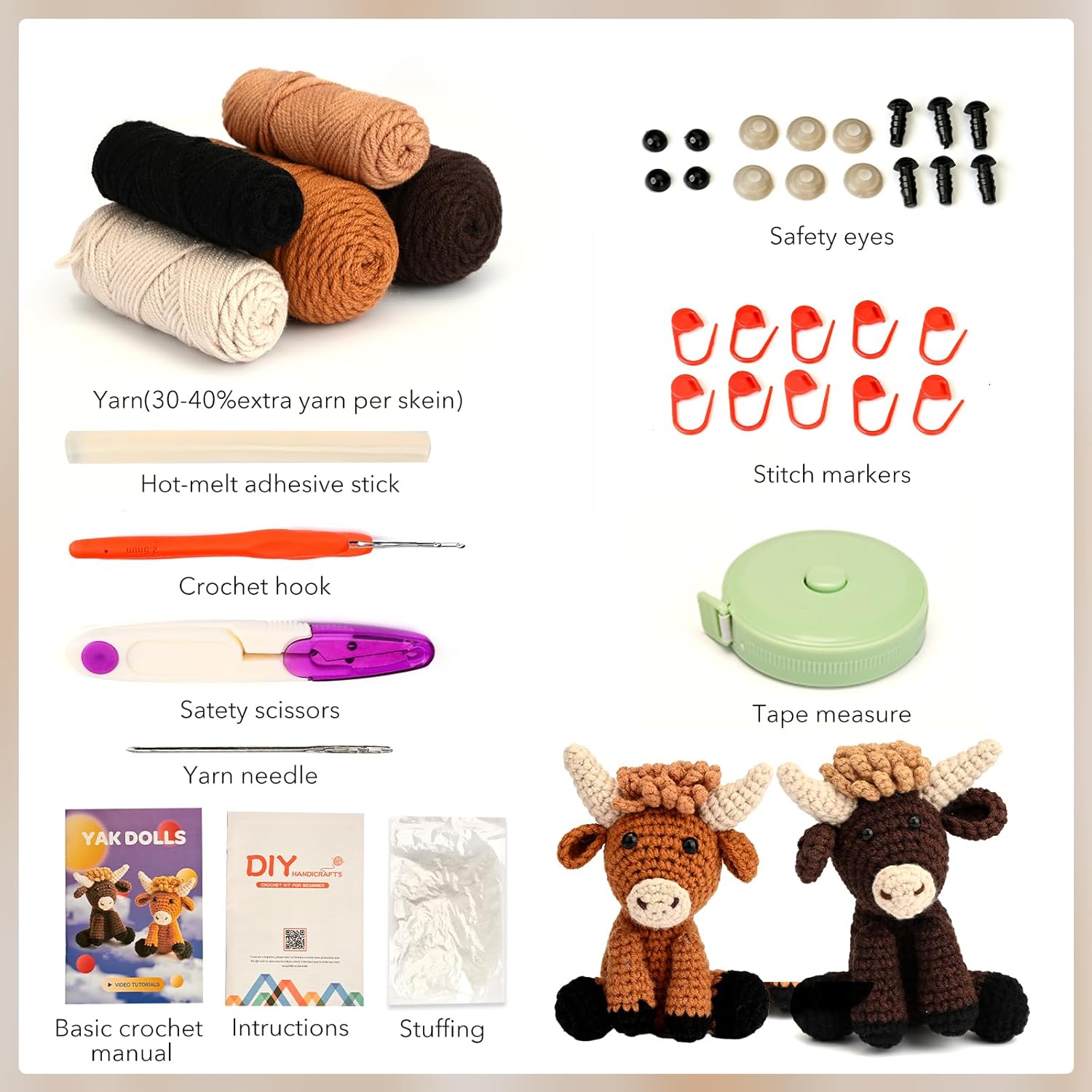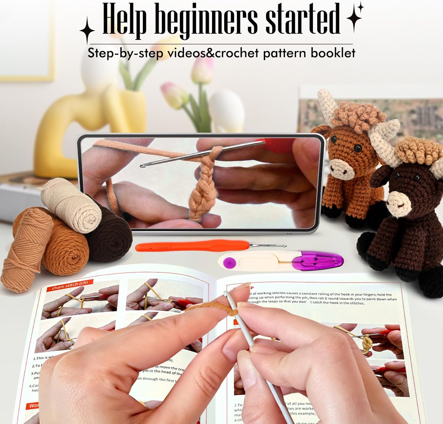 • Mukana kaikki kuvissa näkyvät tarvikkeet ja langat