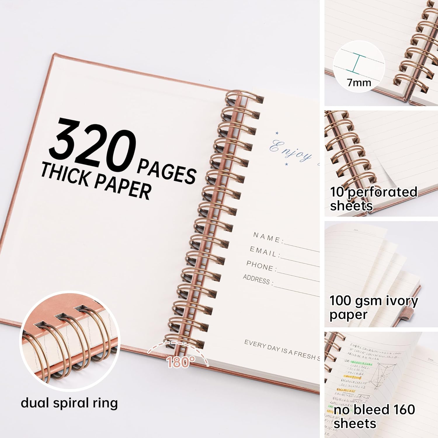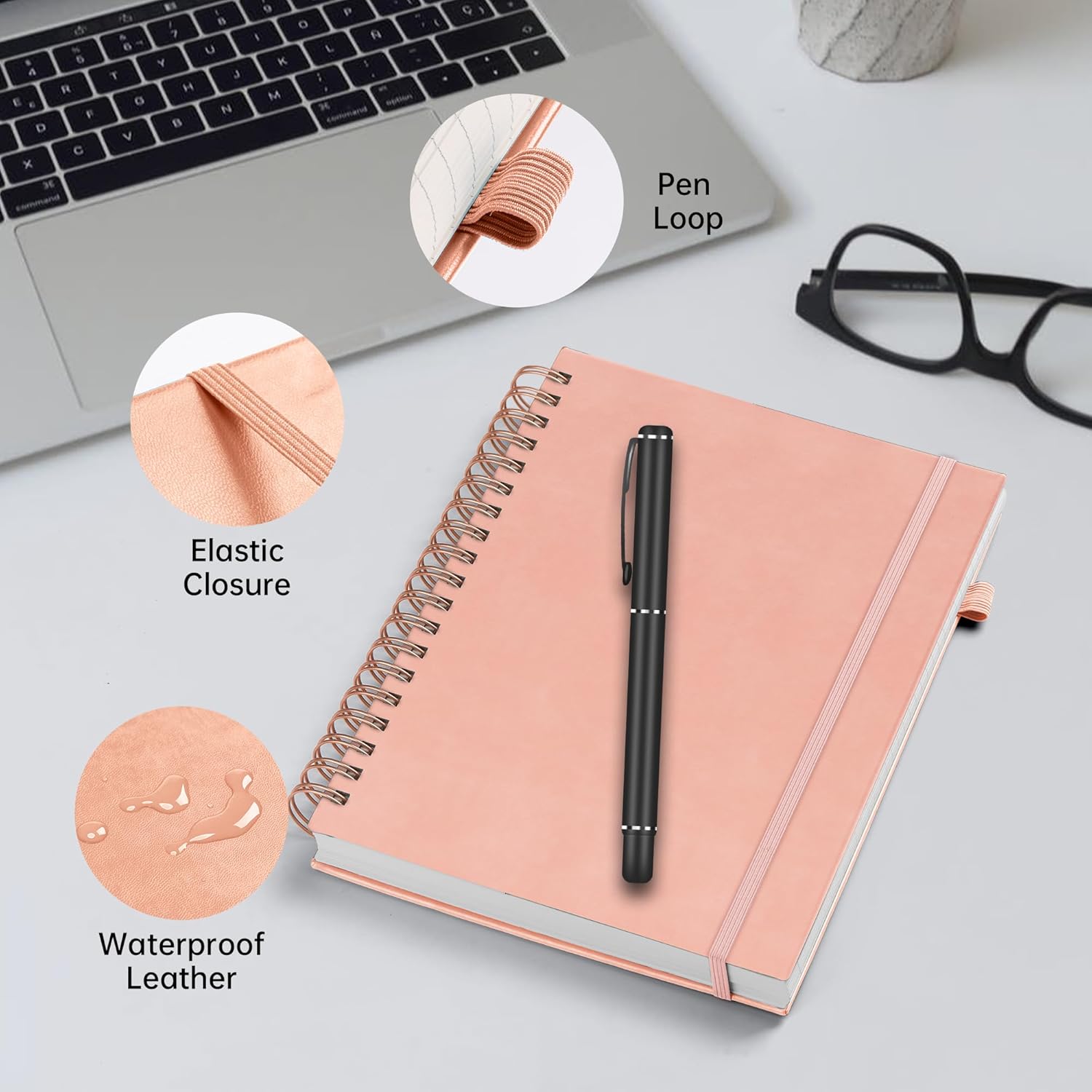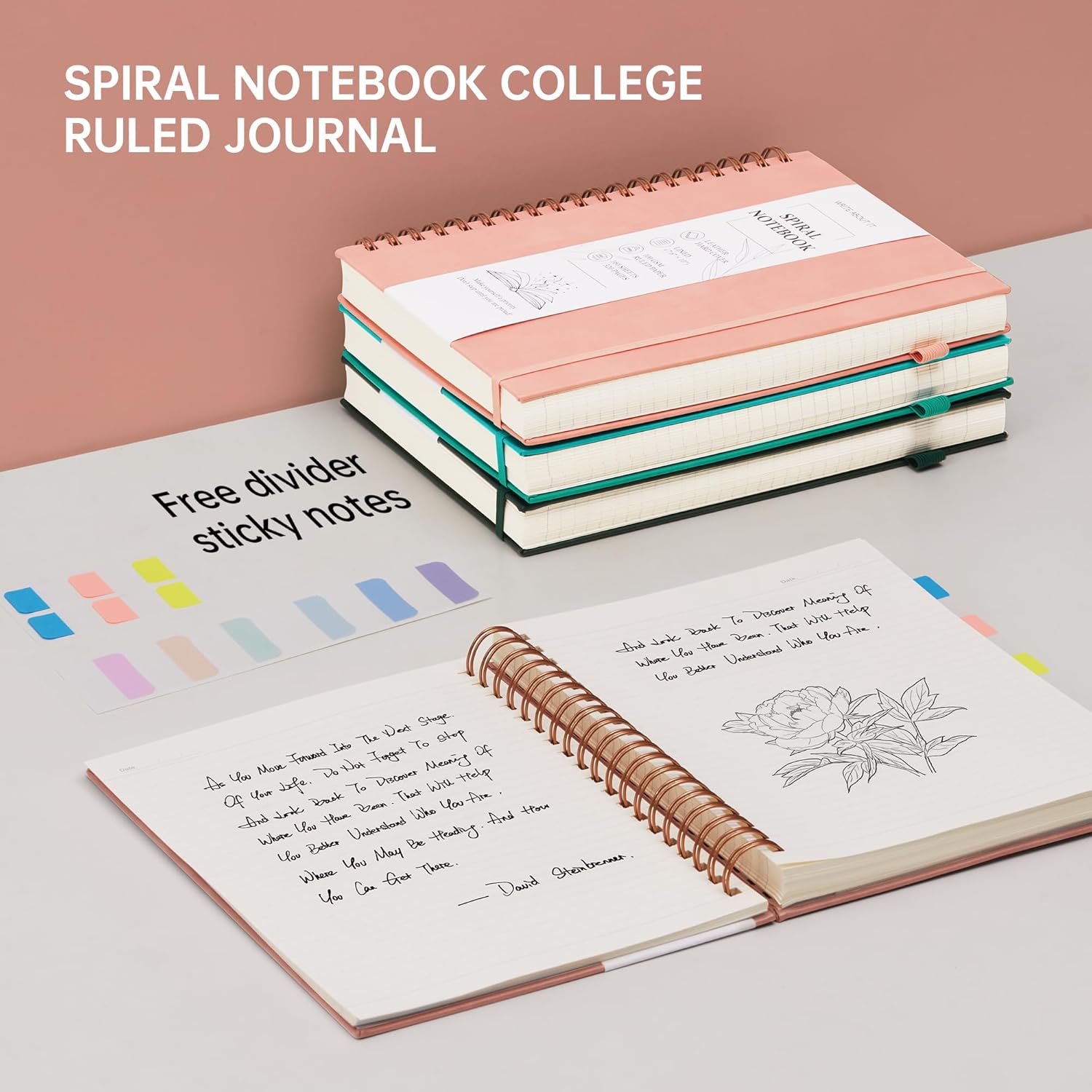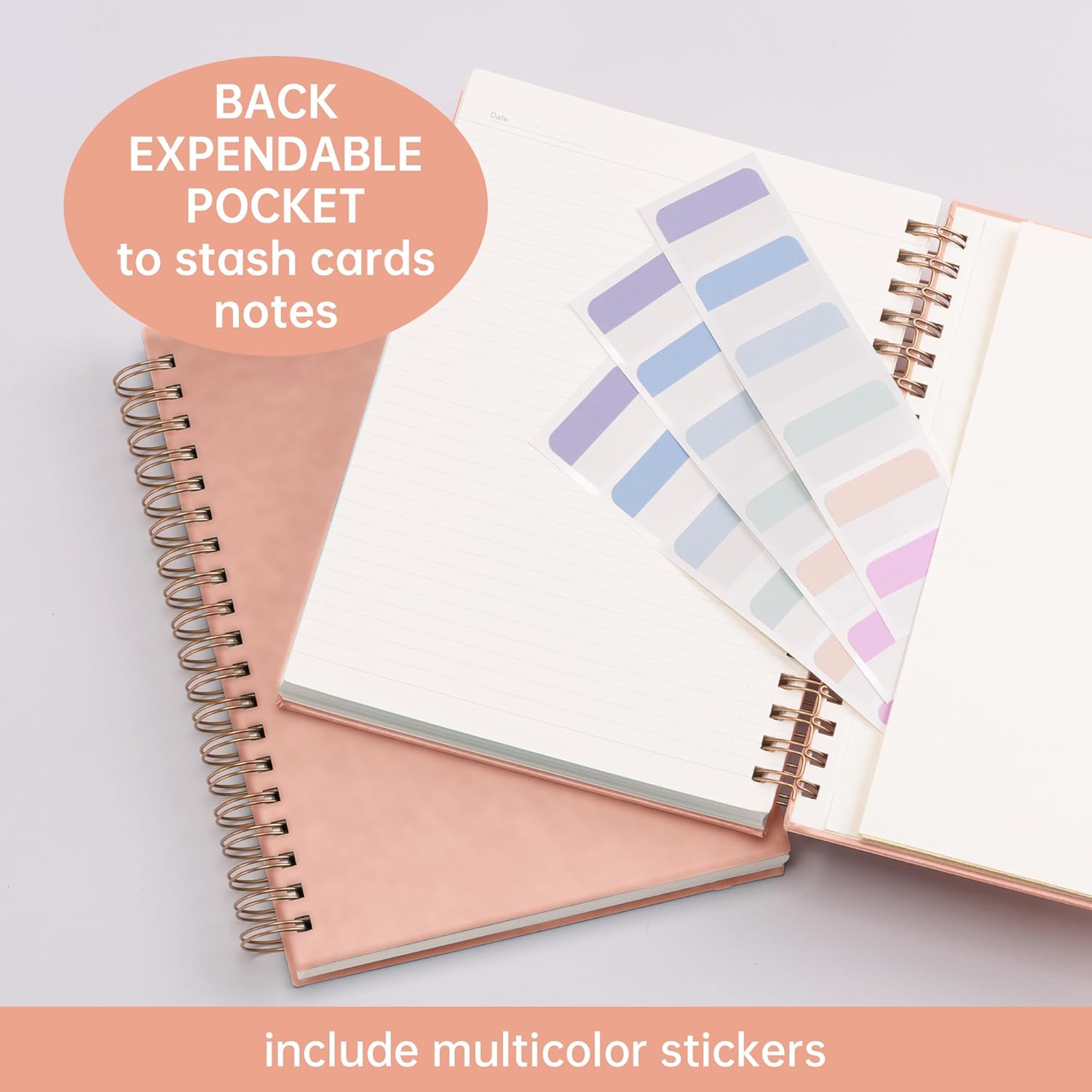 - Kaunis, vaaleanpunainen muistikirja